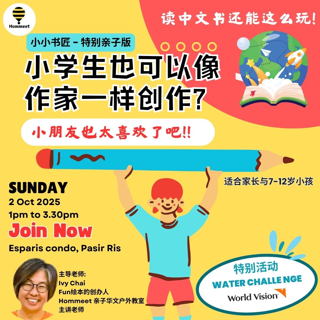 👩🏫 Guided by Ivy Chai, Hommeet 亲子华文户外教室主讲老师, founder of Fun绘本, this workshop will inspire imagination, build language confidence and make learning Chinese exciting.